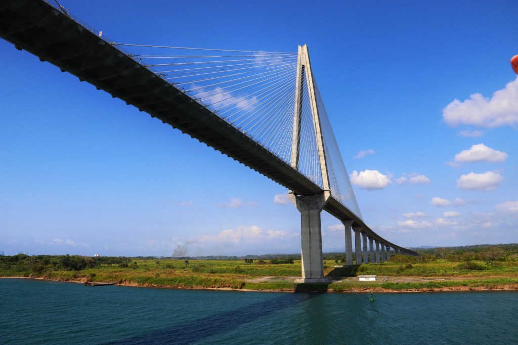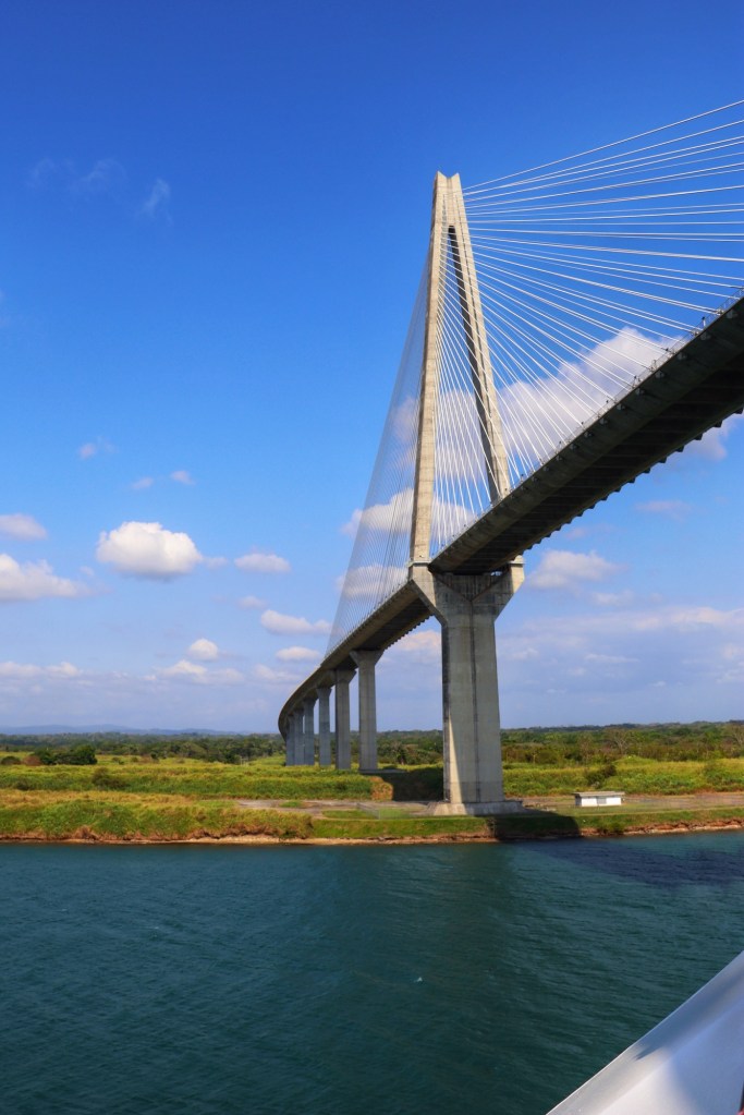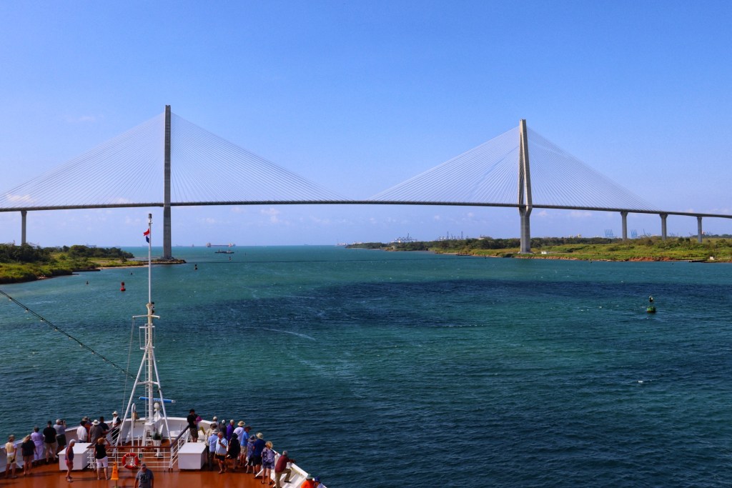 As we finish traversing the canal, we first go under the Atlantic Bridge, probably the prettiest of the three. We enter the Caribbean Sea at the port city of Colón, Panama.