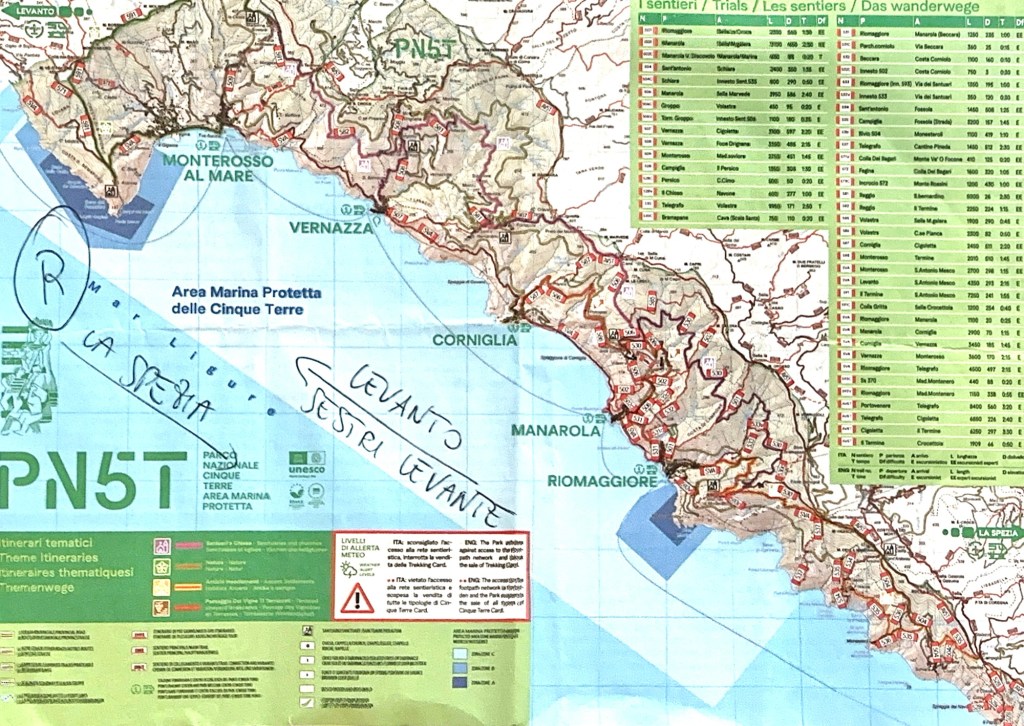 We chose to go to the fourth and fifth towns, Vernazza and Monterossa al Mer, the two most northern. We drove over 2.5 hours to La Spezia Centrale Train Station and then took the train to the Cinque Terre towns.