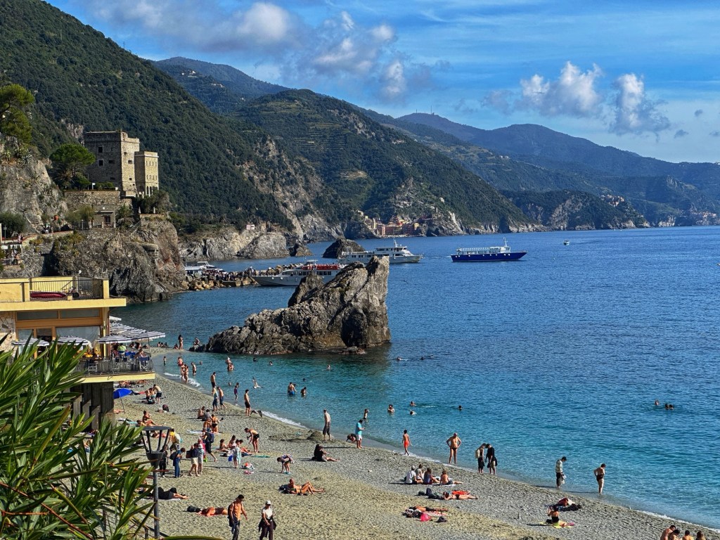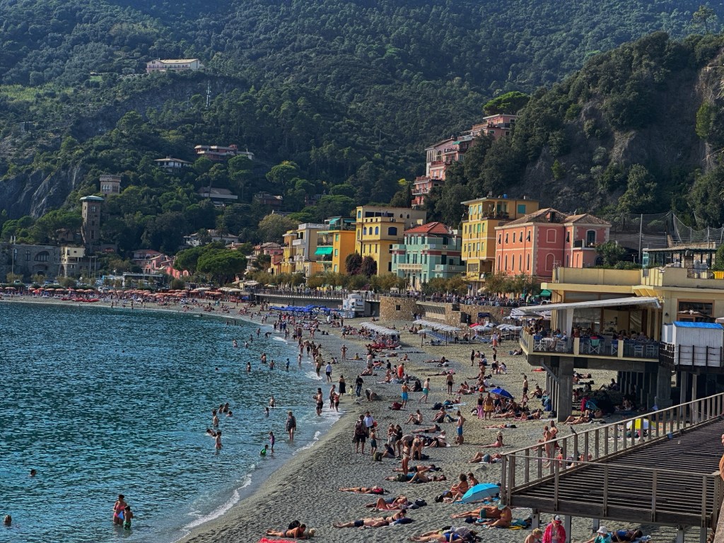 Monterossa al Mer is flatter than Vernazza and has a fairly good size beach. The buildings are still multi-colored and plenty of narrow streets and shops. Laura and others brought a few more things, while the rest of us walked around and had some refreshments. The beach was fairly crowded with a few people actually in the water.