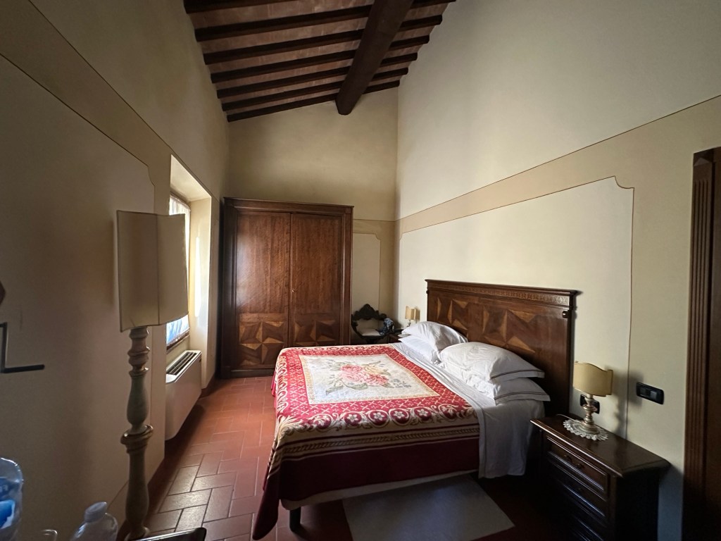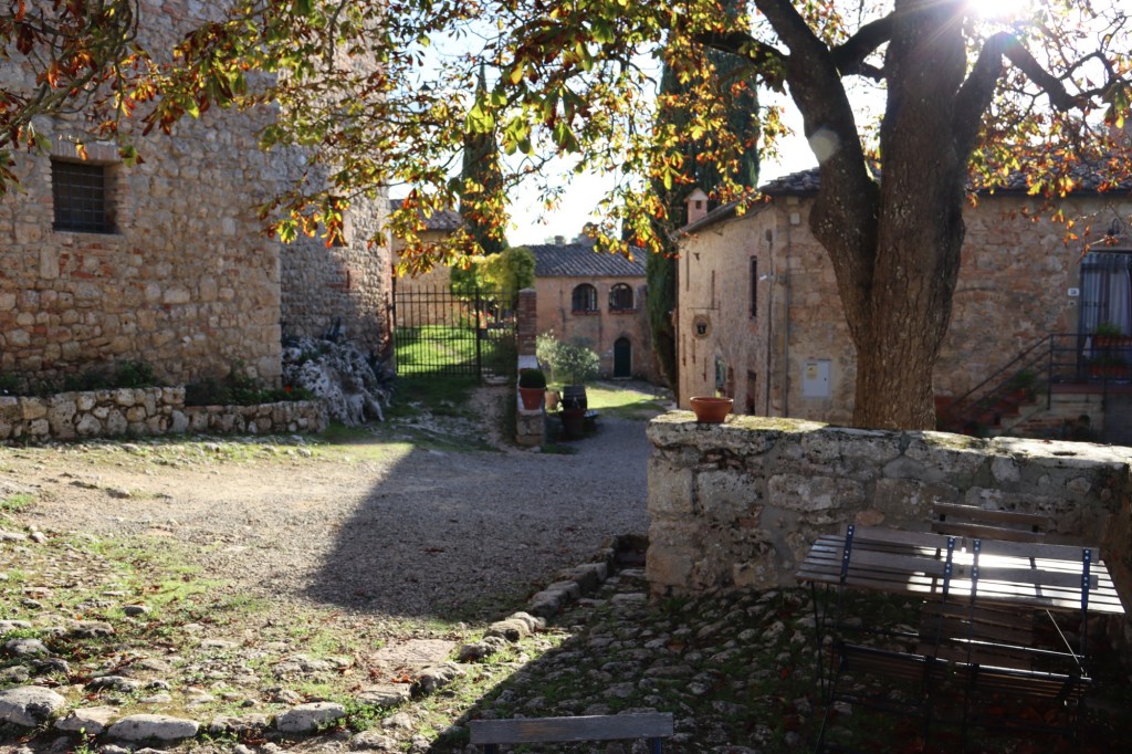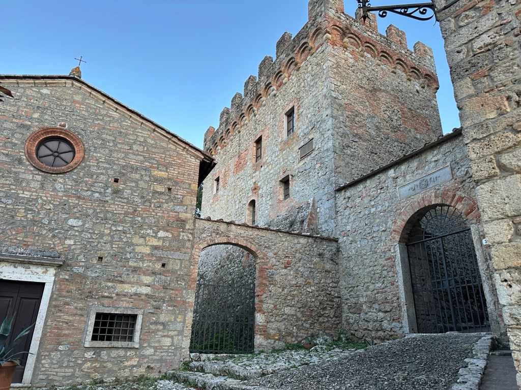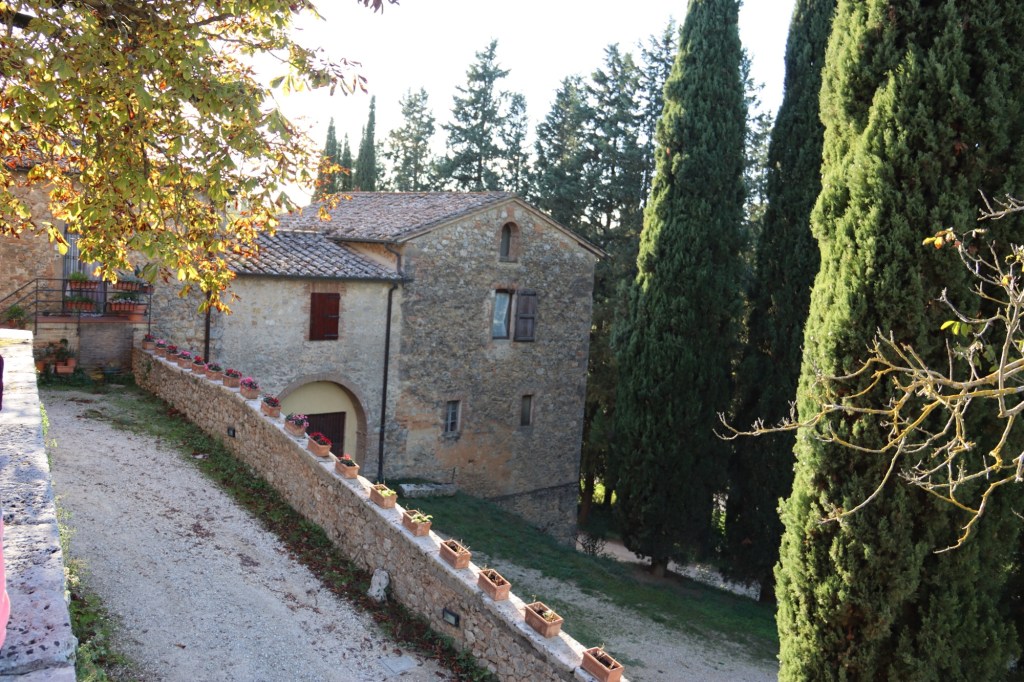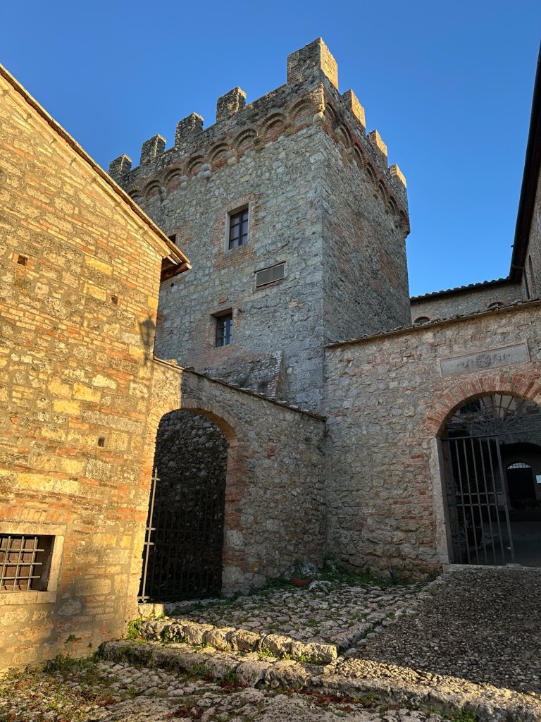 We got back to Castel Pietraio for our scheduled castle tour and wine tasting, provided by Julia. The original square castle building was built in the 8th century as more of a defensive soldier barracks guarding the northern Siena border from the Florentines. Later the building was used as a home for the land owner of the surrounding serf fields, slowly expanding the original building with a kitchen, cask room, chapel, and other living quarters to what now exists. The current owner is a descendent of that original land owner, who runs the small winery and runs it as a agriturismo. Julia pointed out that there is a dormant volcano nearby and the castle is built directly on top of a lava flow for its foundation.