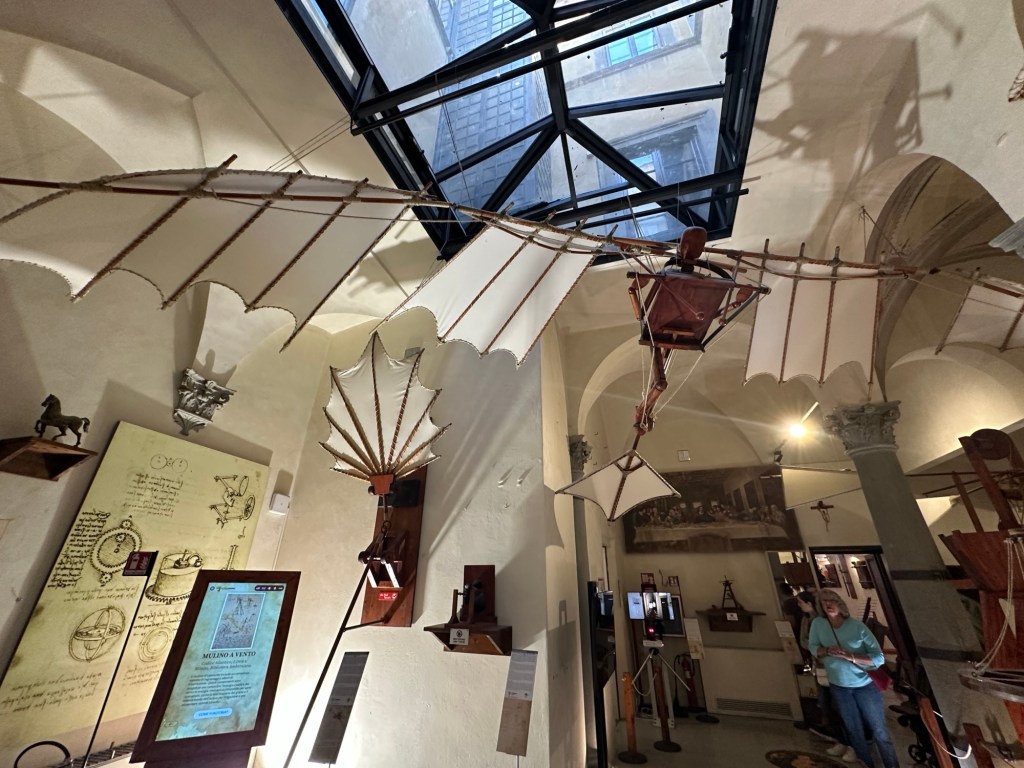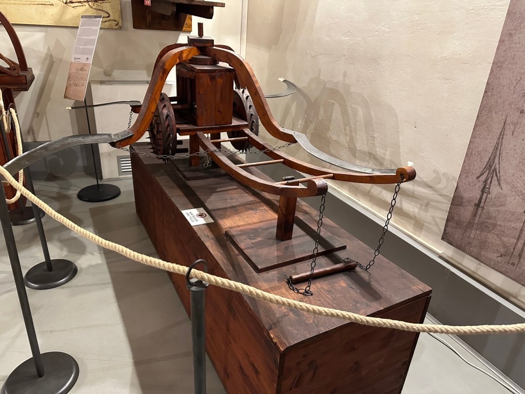 Our first activity was to tour the Leonardo Da Vinci museum. The staff here have created by hand, models of many of Da Vinci’s drawings and plans. Much of the museum is hands-on, encouraging you to try the working models utilizing pulleys, gears, levers and structural concepts. Other more sophisticated models were too fragile for touching. Da Vinci was employed by some kings to design machines of war, so some of the models were for the military.
