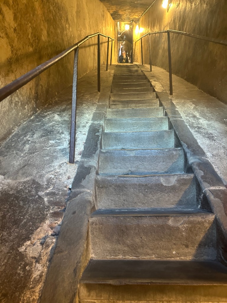 At the top, we rested, took celebratory photos, and took in the views. After about 15 minutes we were guided to the stairwell for the journey back down. There are a single set of steps in the dome, so we needed to go down before the next group came up to the dome level. We had our own down step-case below the base of the dome. When reaching solid ground outside, we went straight to a cafe and ordered some refreshing beers.