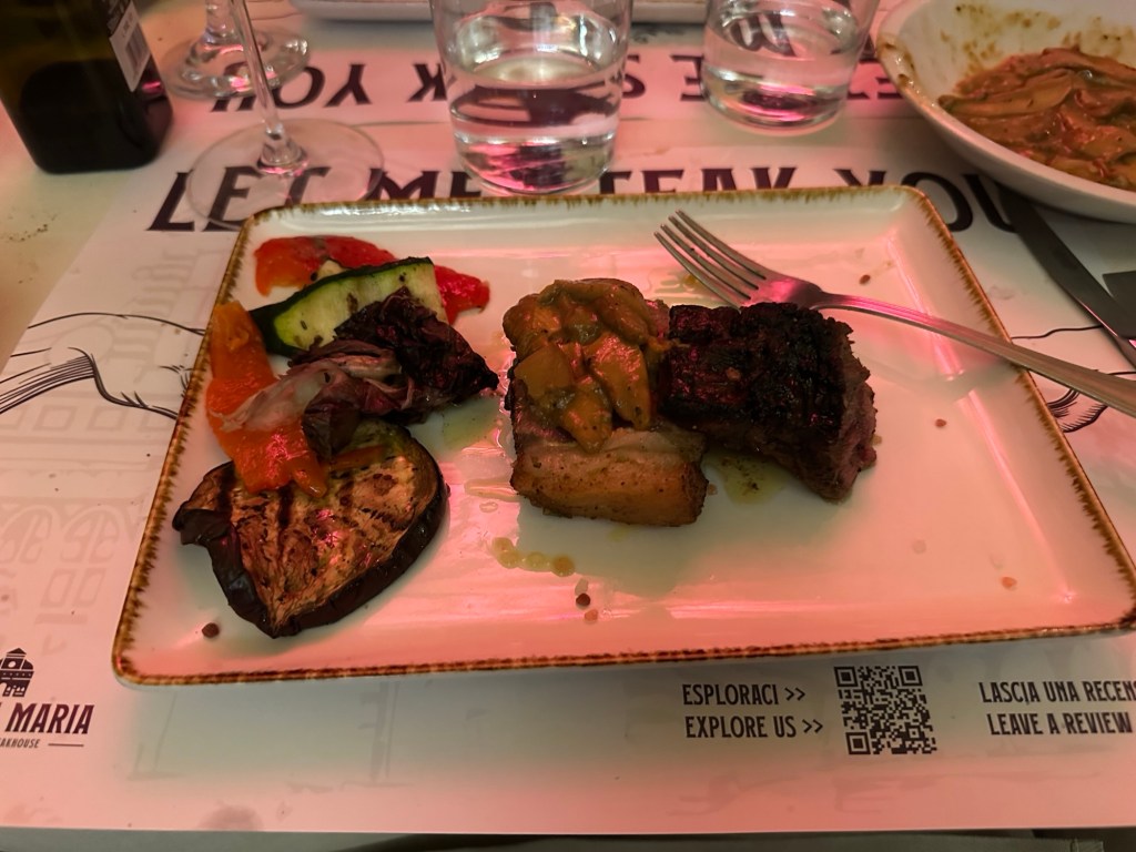 Tonight’s dinner was at Il Santa Maria Ristorante, looking out onto the Piazza di Santa Maria Novella. The weather was nice enough to sit outdoors and we were greeted with a glass of Prosecco while waiting to be seated. As it seems at each meal so far, the food is fantastic. Primi first courses of pasta, and secondi main course of meat provides so much food, but we still ate it all!