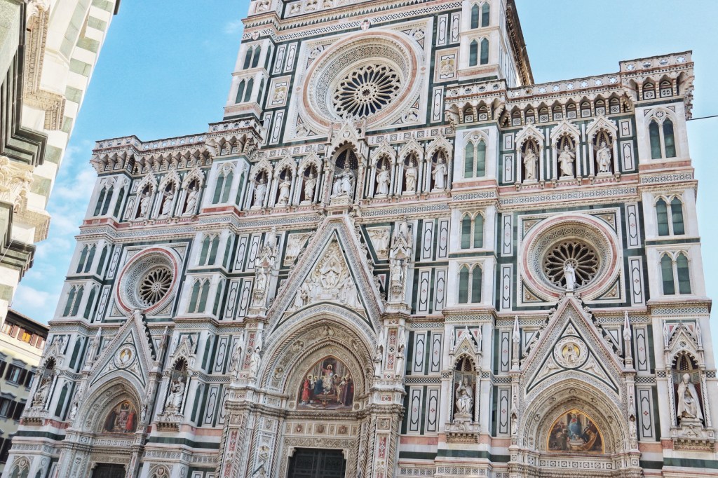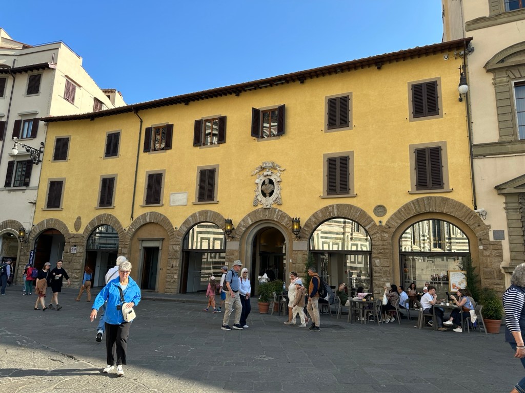 The tour ended with Christina explaining the front face of the Cathedral outside, now a neo-gothic design with the marble facing. It’s more than figures of popes and saints. It includes the contemporary people of the time; Galileo, Michelangelo, Di Vinci, Brunelleschi, Vespucci, etc.