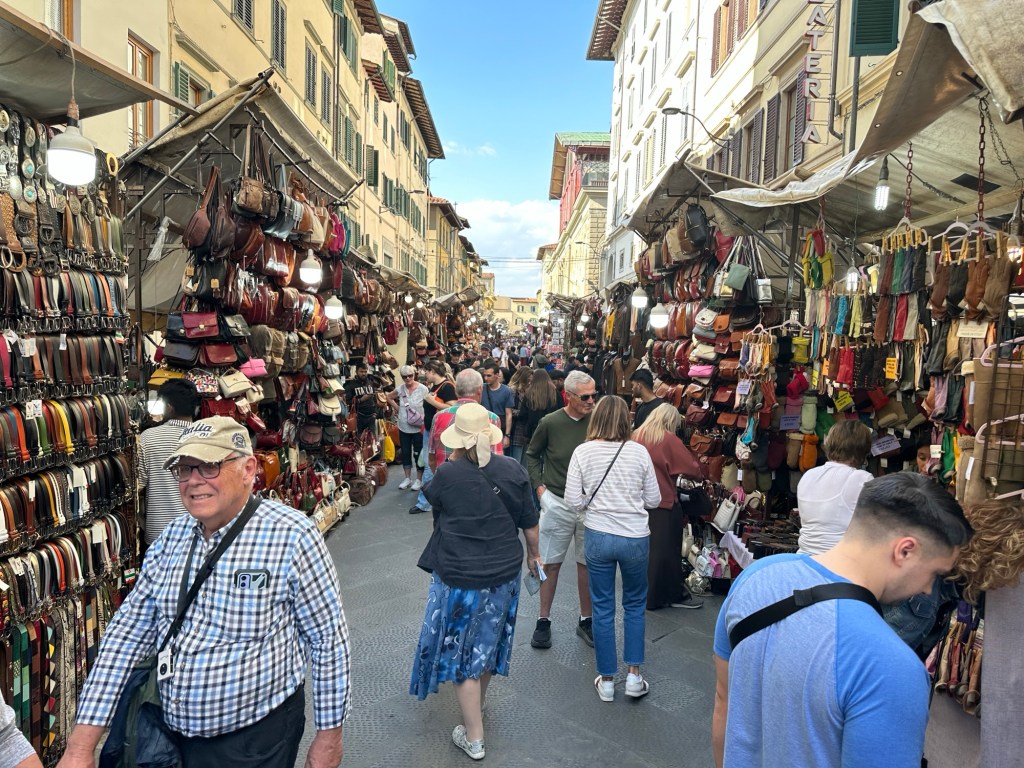 After the tour, we found an outdoor cafe for lunch. Afterwards, some of the group went back to the hotel to relax and play cards and a few others of us went out shopping around the Mercato Centrale, that has lots of vendor booths along the curbs. In Mercato Centrale, a food/produce market, I found a charming booth of a family run winery/olive oil/agritourismo. We took everybody back there the next day, so I’ll discuss it further in tomorrow’s blog.
