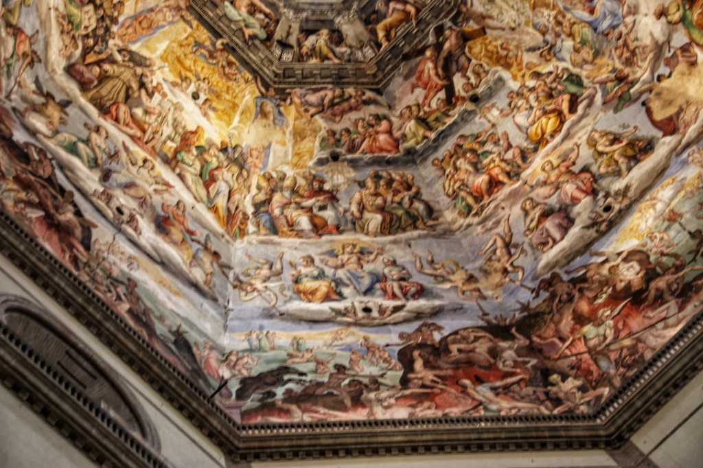 The Last Judgement was started by Giorgio Vasari in 1572, and upon his death, completed by Frederico Zuccari in 1579. Opposing sides of the fresco have God in Heaven versus Lucifer in Hell, with stories portrayed in the rising levels. There are 700 figures painted, many using famous kings and rulers faces.